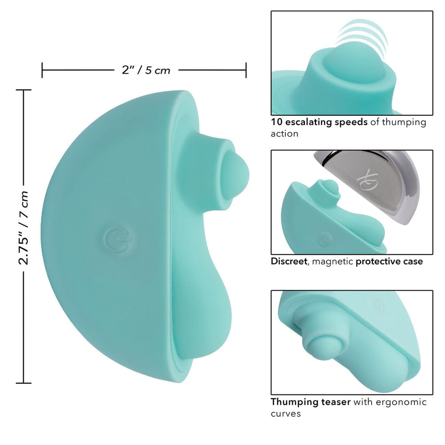 Experience ten thumping pleasure speeds that rhythmically massage your desired areas. This ergonomically shaped stimulator is made of smooth silicone and nonporous plastic.